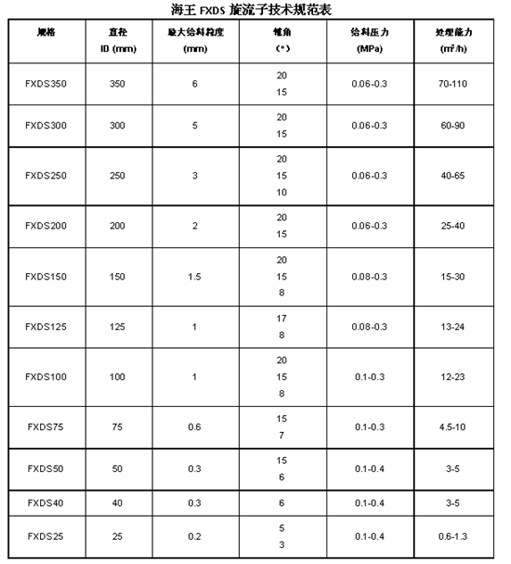 FXDS旋流子(旋流站)規(guī)格型號
