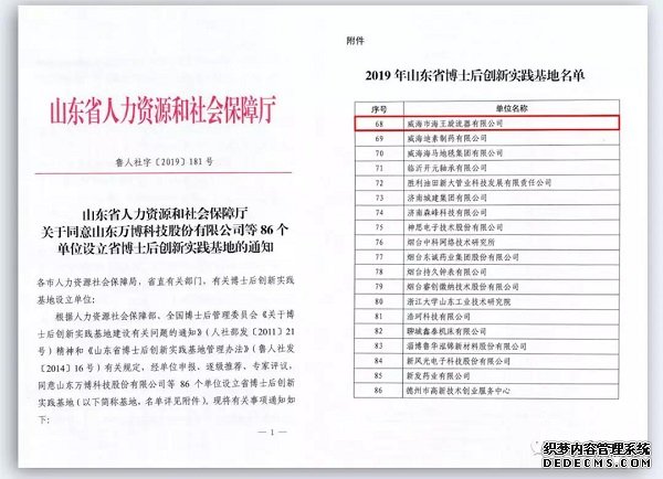 2019年11月8日,省人力資源和社會保障廳公布了2019年山東省博士后創(chuàng)新實踐基地名單。