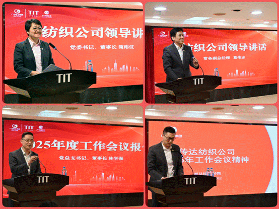 紡織公司黨委書記、董事長簡瑋儀在肯定化工公司2024年工作成果的同時,進一步提出了五點要求:一是要奮力完成2025年度目標任務,全力以赴打好“十四五”收官戰;二是要堅持穩中求進、深化改革,積極打造核心競爭力;三是要挖掘貿易資源,提升公司品牌化,產業化,國際化布局;四是要統籌好發展與安全,做好資金運營管理;五是要加強人才培育,凝聚發展合力。