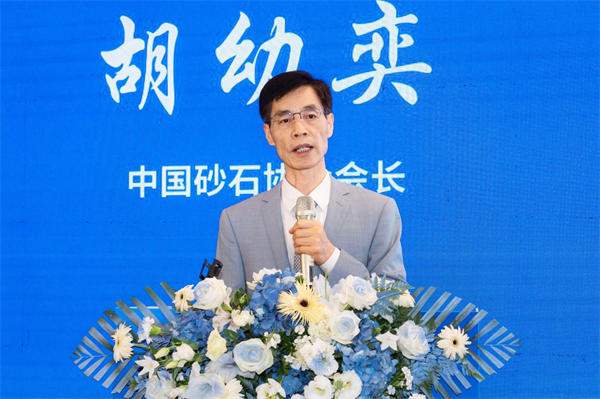 中國(guó)砂石協(xié)會(huì)會(huì)長(zhǎng)胡幼奕作題為《當(dāng)前國(guó)際國(guó)內(nèi)經(jīng)濟(jì)形勢(shì)和砂石工業(yè)的綠色發(fā)展》的主旨報(bào)告。