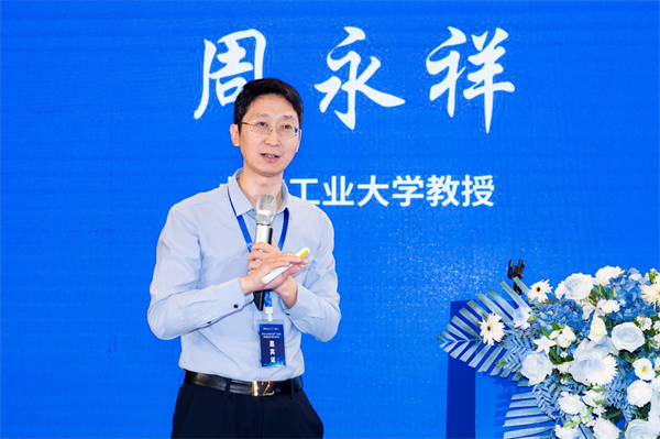 北京工業(yè)大學(xué)教授周永祥作題為《機(jī)制砂生產(chǎn)過程中的尾粉(泥)利用新技術(shù)》的報(bào)告。