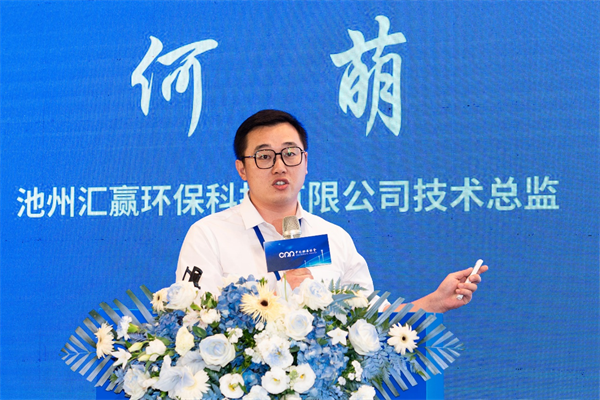 池州匯贏環(huán)??萍加邢薰炯夹g(shù)總監(jiān)何萌作題為《砂石尾泥資源化綜合利用項(xiàng)目介紹》的報(bào)告