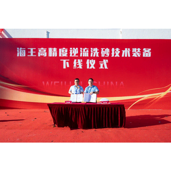 21日下午,海王公司舉辦高精度逆流洗砂技術(shù)裝備下線儀式暨洗砂裝備戰(zhàn)略合作簽約儀式。
